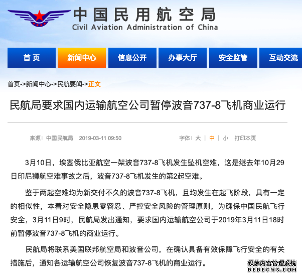 此前,在埃塞俄比亞(ya)航空波音737 MAX失(shi)事后(hou)不到(dao)24小(xiao)時,中國(guo)民航總局率先停(ting)飛國(guo)內(nei)所有運營中的96架737 MAX飛機。歐美各國(guo)隨后(hou)集(ji)體跟(gen)進,加入停(ting)飛、禁飛波音737 MAX行列(lie)。