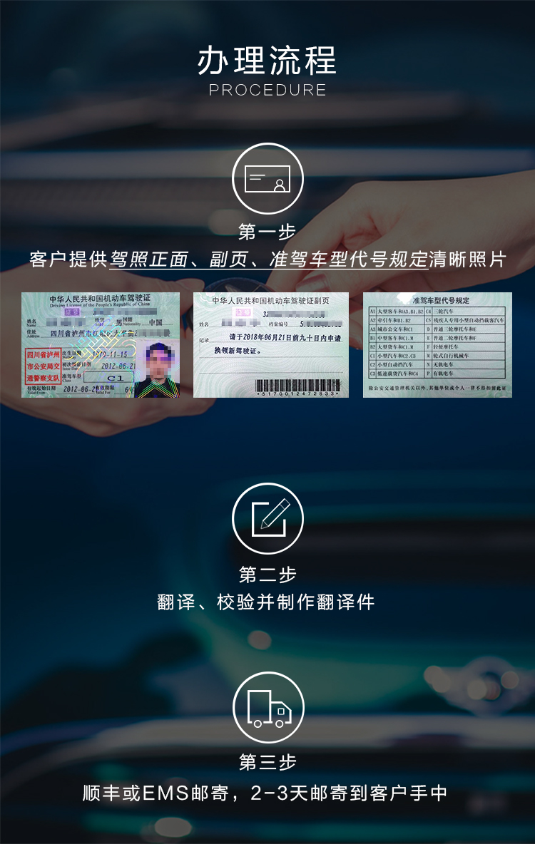 1.國內公證翻譯和國外三級翻譯出來的效果是相等的,在國外路查或是租車時候基本都會接受這個翻譯件。雖然中國的駕照上有英文,但是不是全英文的,所以那些想著不需要翻譯認證直接去美國開車的客戶盡快醒悟。按照美國道路規定,中國駕照市北美國政府認可的,但是需要配備正規英文翻譯認證件,英文內容必須包括準駕車型介紹,印章文字英文解釋等。如果你是自駕游,我司提供的國內英文認證件就可以直接使用,美國機場的各大租車公司都是認可的。