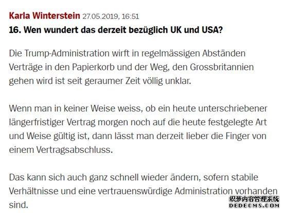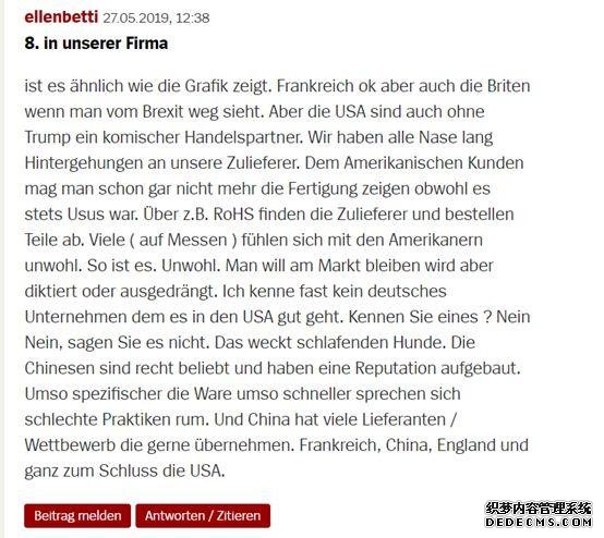 其他網民也多數認為,美國和英國對于“共贏”理念的遺棄,是導致這兩個西方世界的大國越發不受到德國企業信賴的原因。