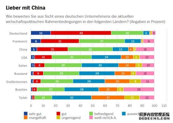 根據《明鏡》周刊的報道,德國商業銀行最近委托了德國的一家調查機構對德國2000名中小企業的高管進行了問卷調查,其中涉及“如何評價外國的經濟政策”,“對未來經濟前景的看法如何”等問題。